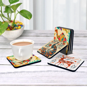 Sheenkraft Square Wood Coaster(4″ x 4″) With Stand , SKU ID: Sk_Square_TeaCoasters30,(Set of 6)
